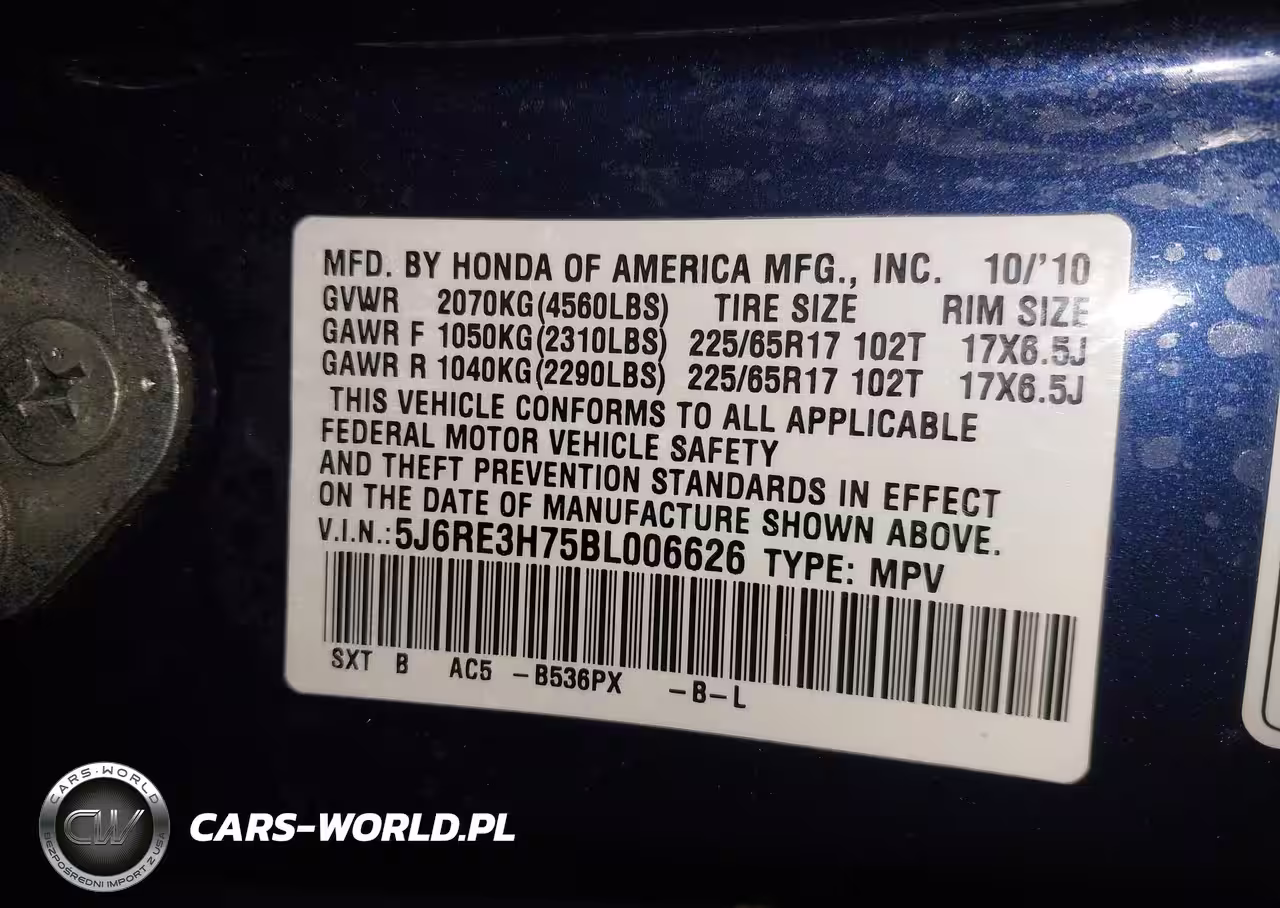 IAAI Nr: I-44275166 VIN: 5J6RE3H75BL006626 Port: Elizabeth, NJ