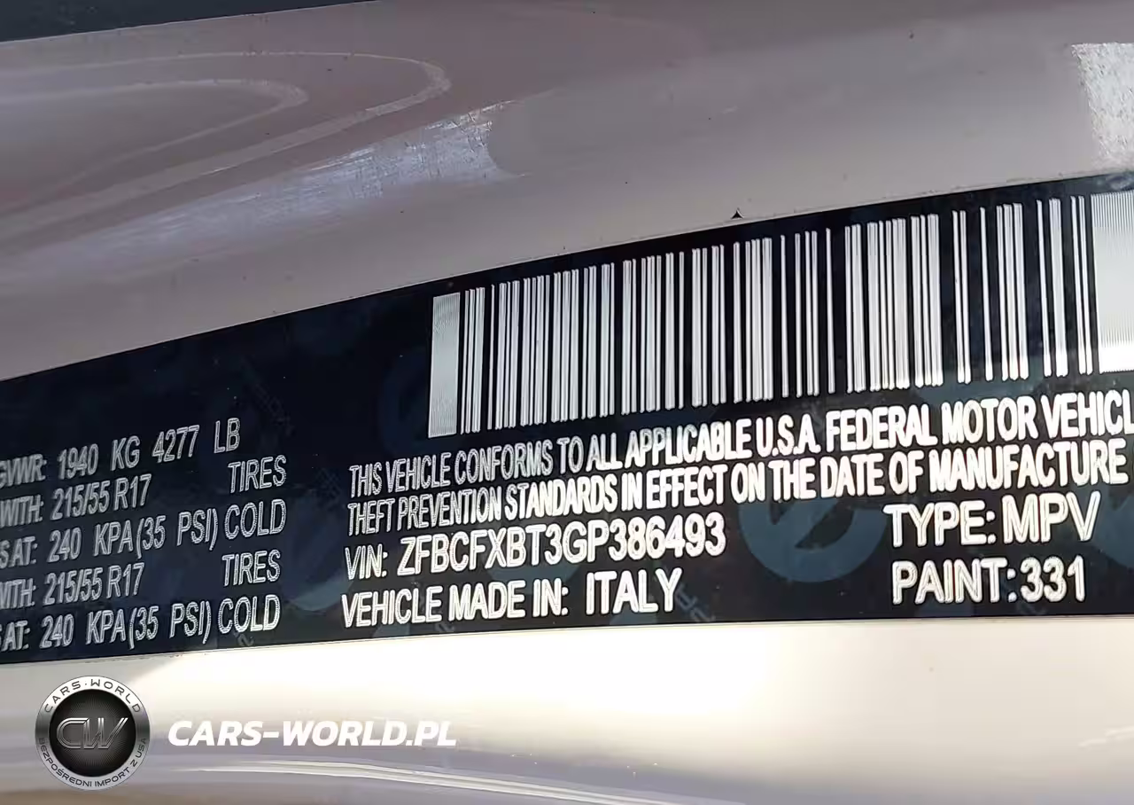 IAAI Nr: I-44276996 VIN: ZFBCFXBT3GP386493 Port: Indianapolis, IN