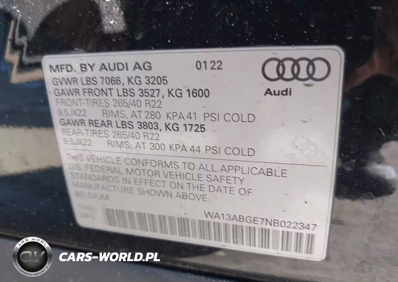 IAAI Nr: I-44278361 VIN: WA13ABGE7NB022347 Port: Los Angeles, CA