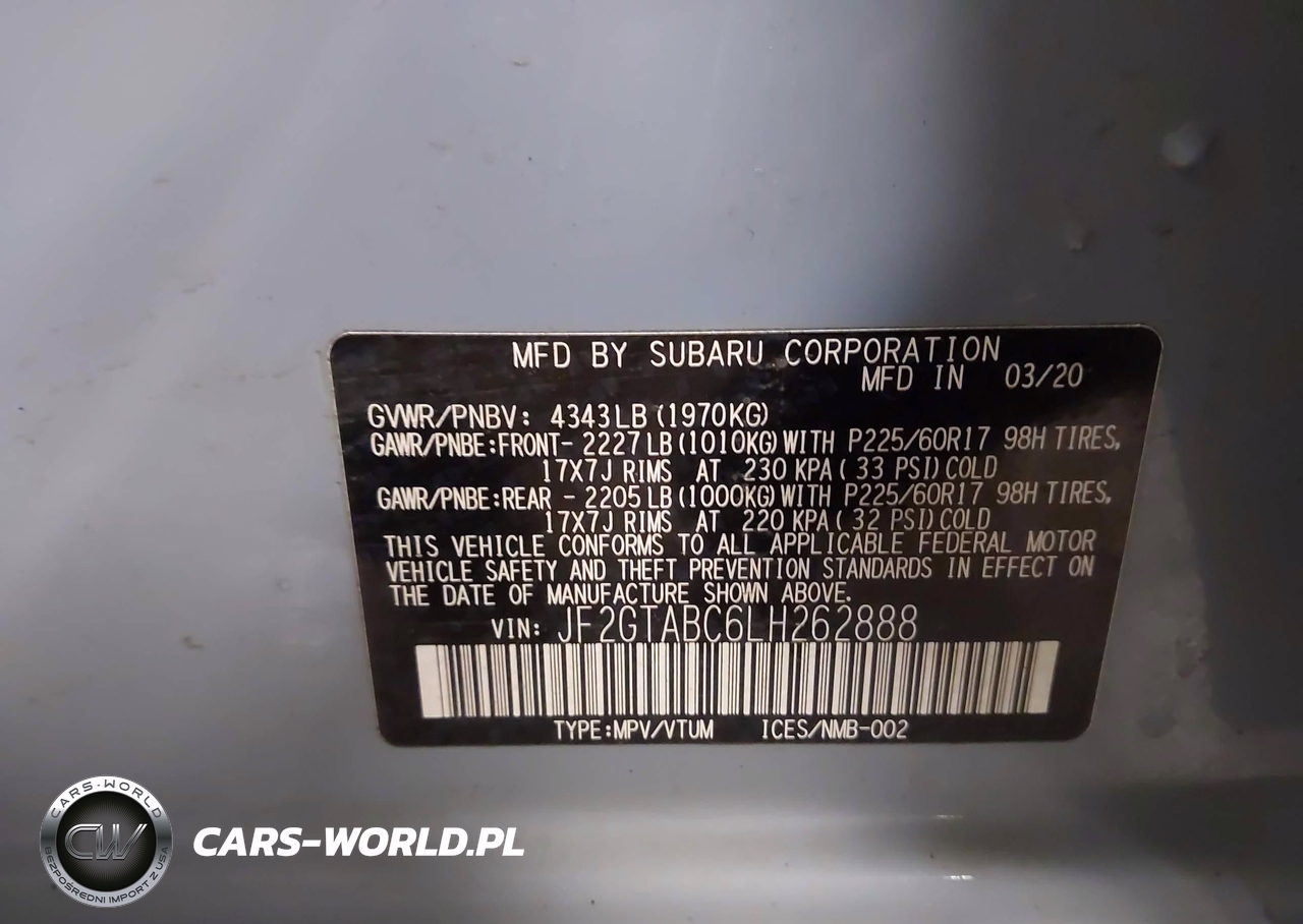 IAAI Nr: I-44282397 VIN: JF2GTABC6LH262888 Port: Elizabeth, NJ