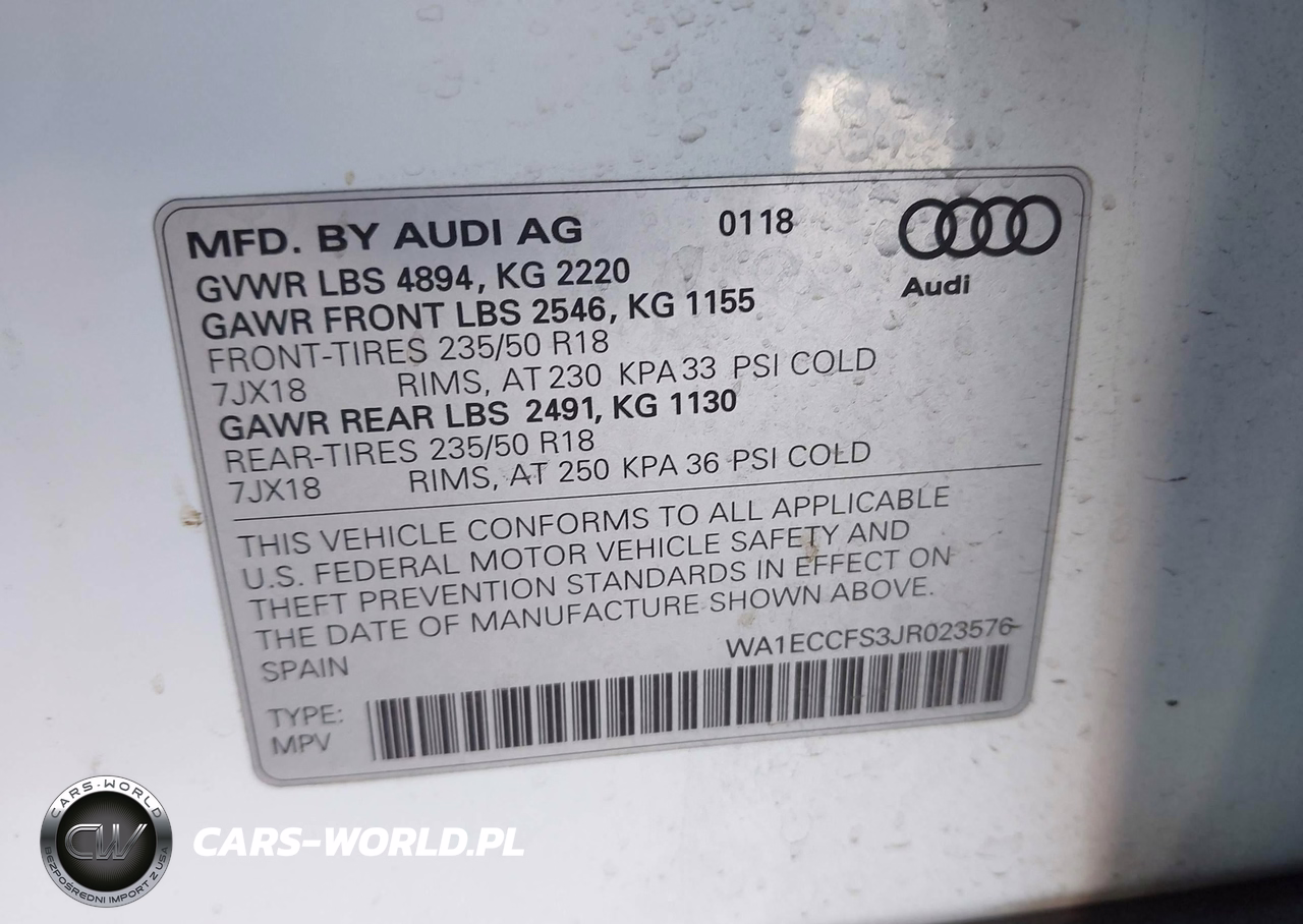 IAAI Nr: I-44283067 VIN: WA1ECCFS3JR023576 Port: Houston, TX