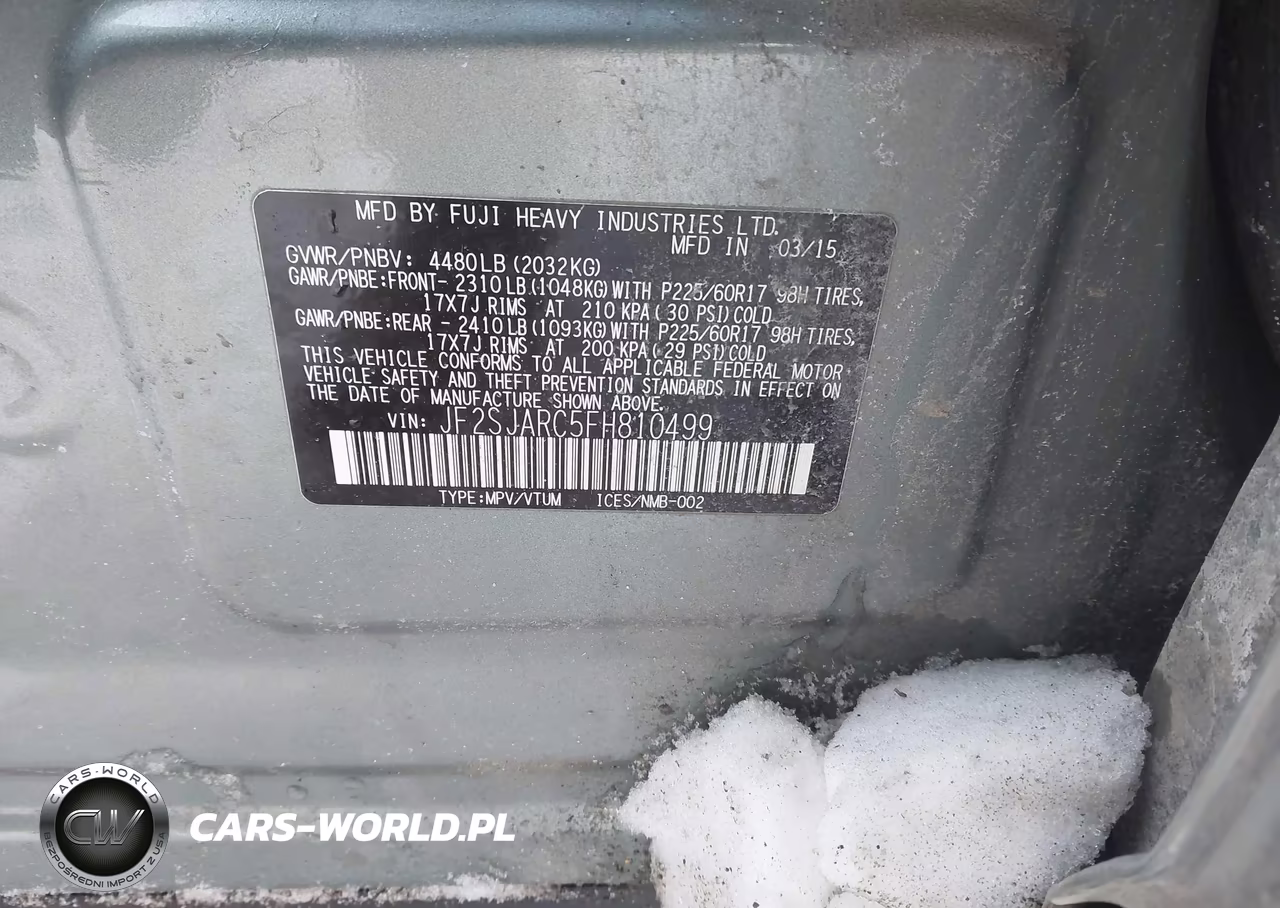 IAAI Nr: I-44284566 VIN: JF2SJARC5FH810499 Port: Elizabeth, NJ