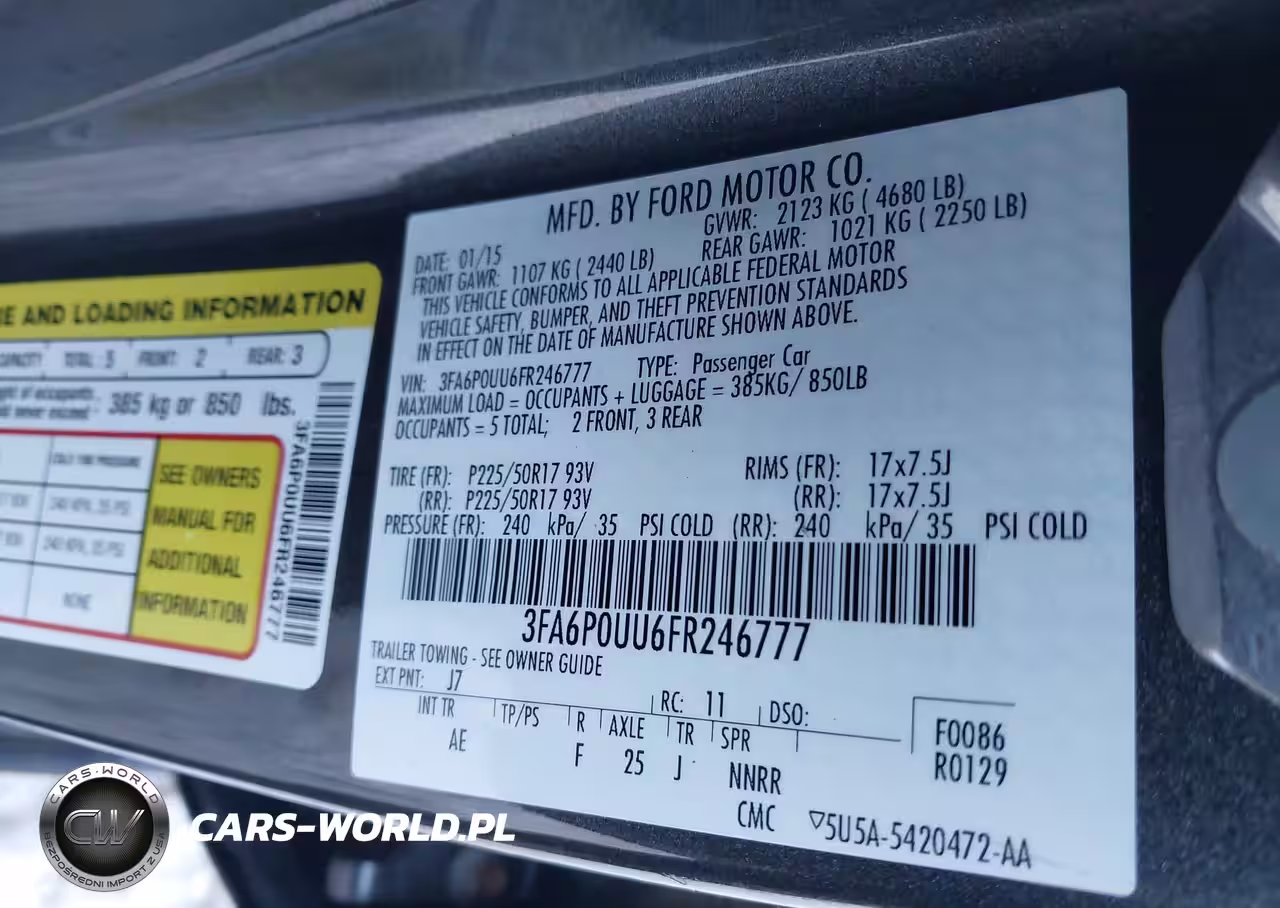 IAAI Nr: I-44285085 VIN: 3FA6P0UU6FR246777 Port: Elizabeth, NJ