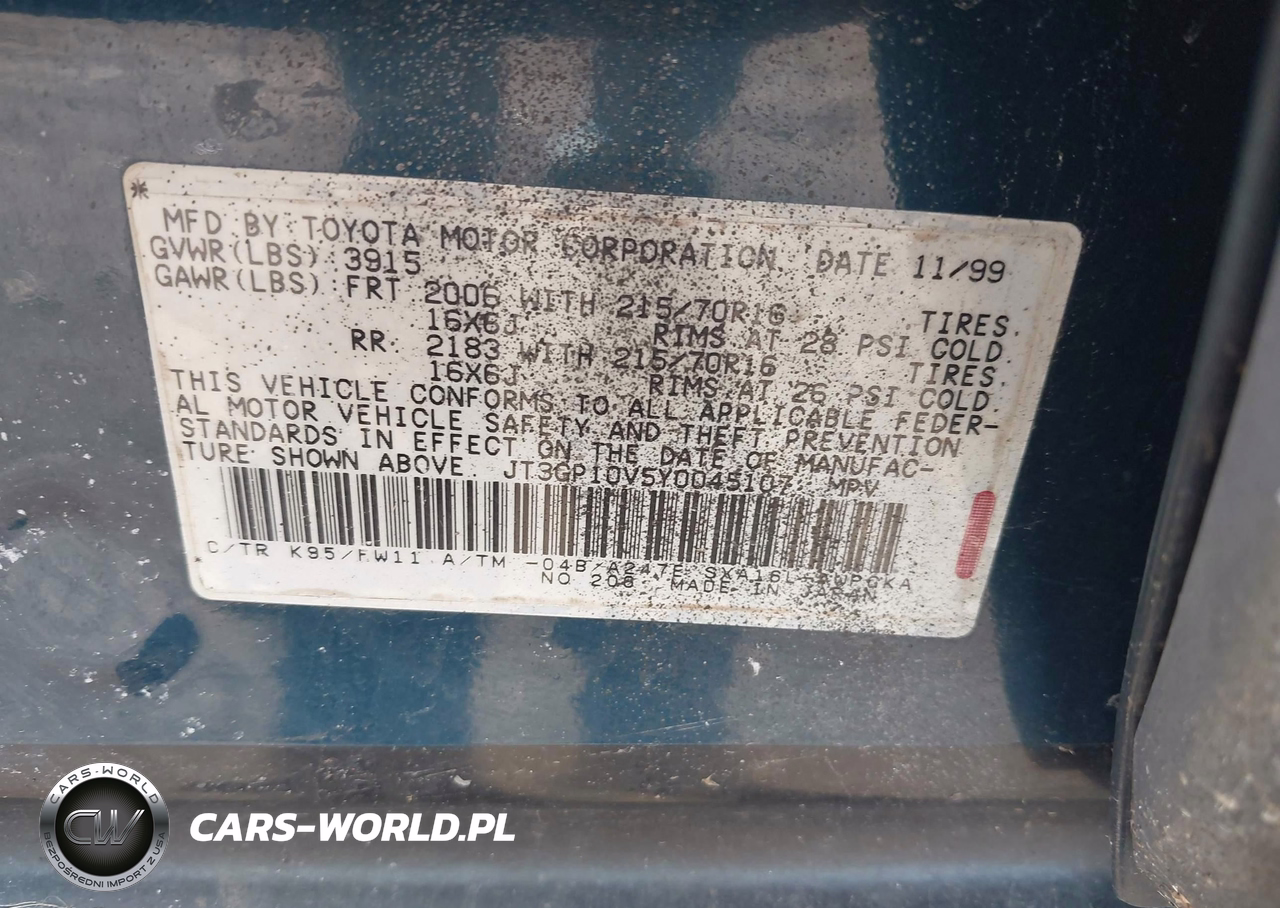 IAAI Nr: I-44285151 VIN: JT3GP10V5Y0045107 Port: Elizabeth, NJ