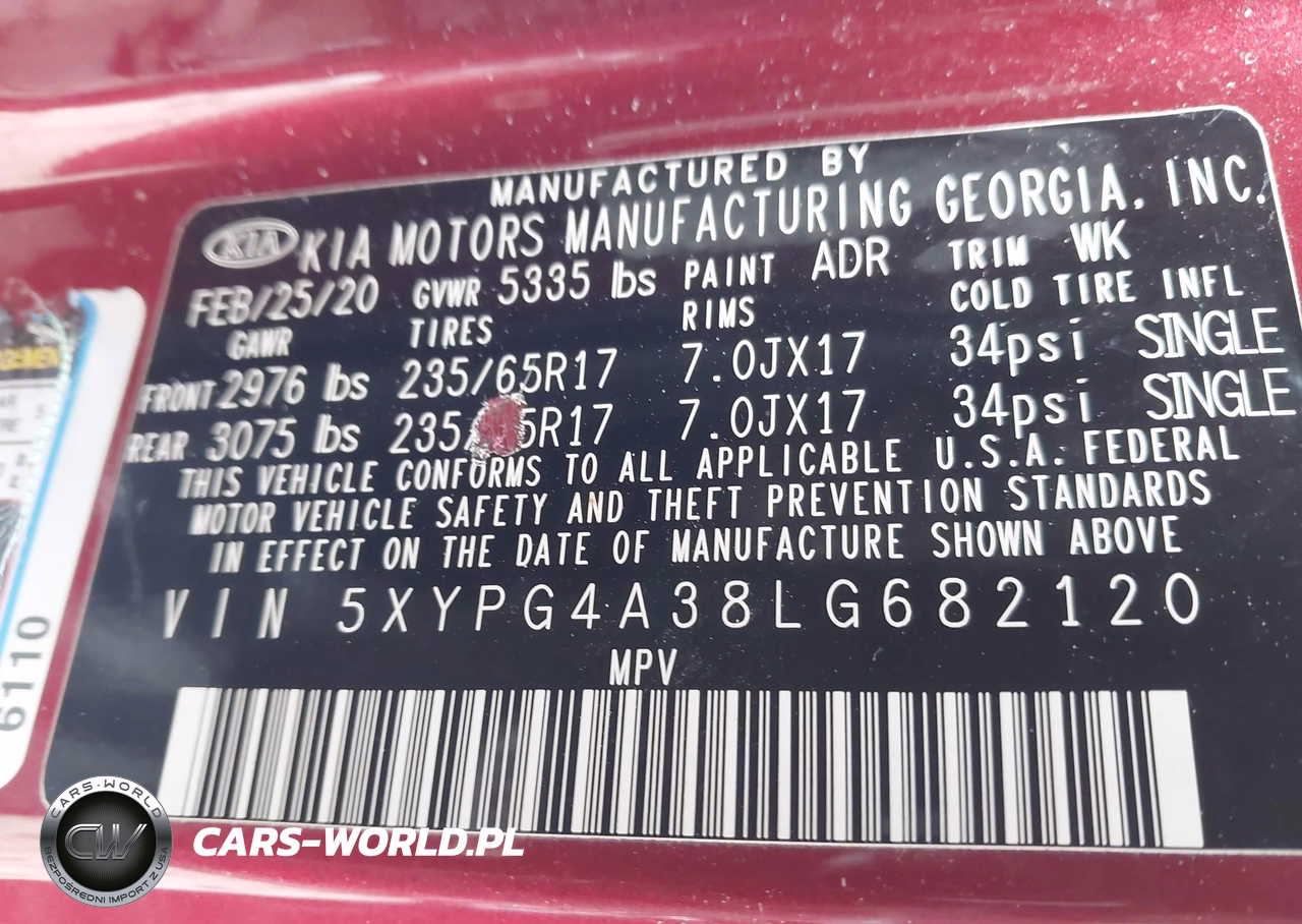 IAAI Nr: I-44285305 VIN: 5XYPG4A38LG682120 Port: Indianapolis, IN
