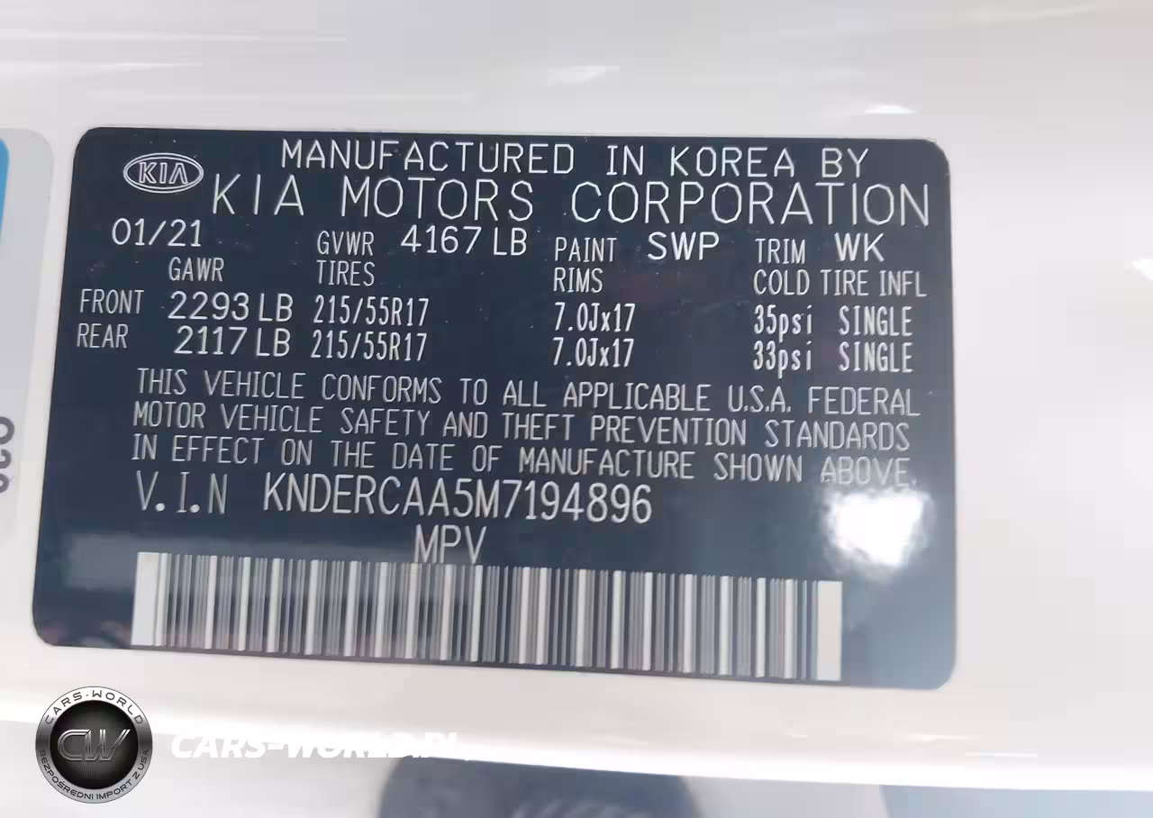 IAAI Nr: I-44287029 VIN: KNDERCAA5M7194896 Port: Los Angeles, CA