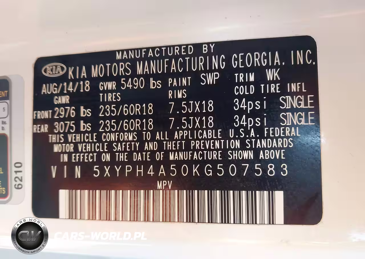 IAAI Nr: I-44287136 VIN: 5XYPH4A50KG507583 Port: Savannah, GA