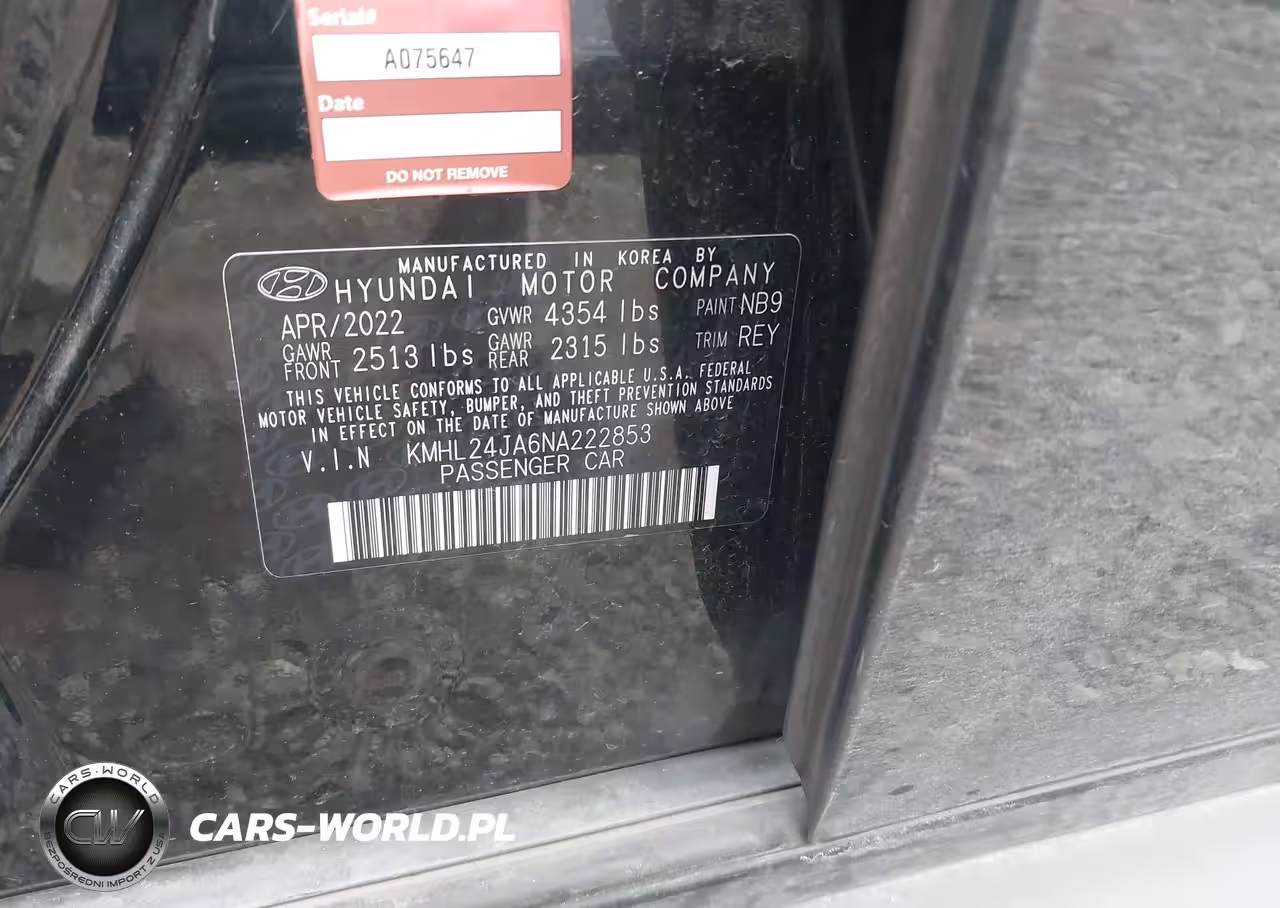 IAAI Nr: I-44287317 VIN: KMHL24JA6NA222853 Port: Houston, TX