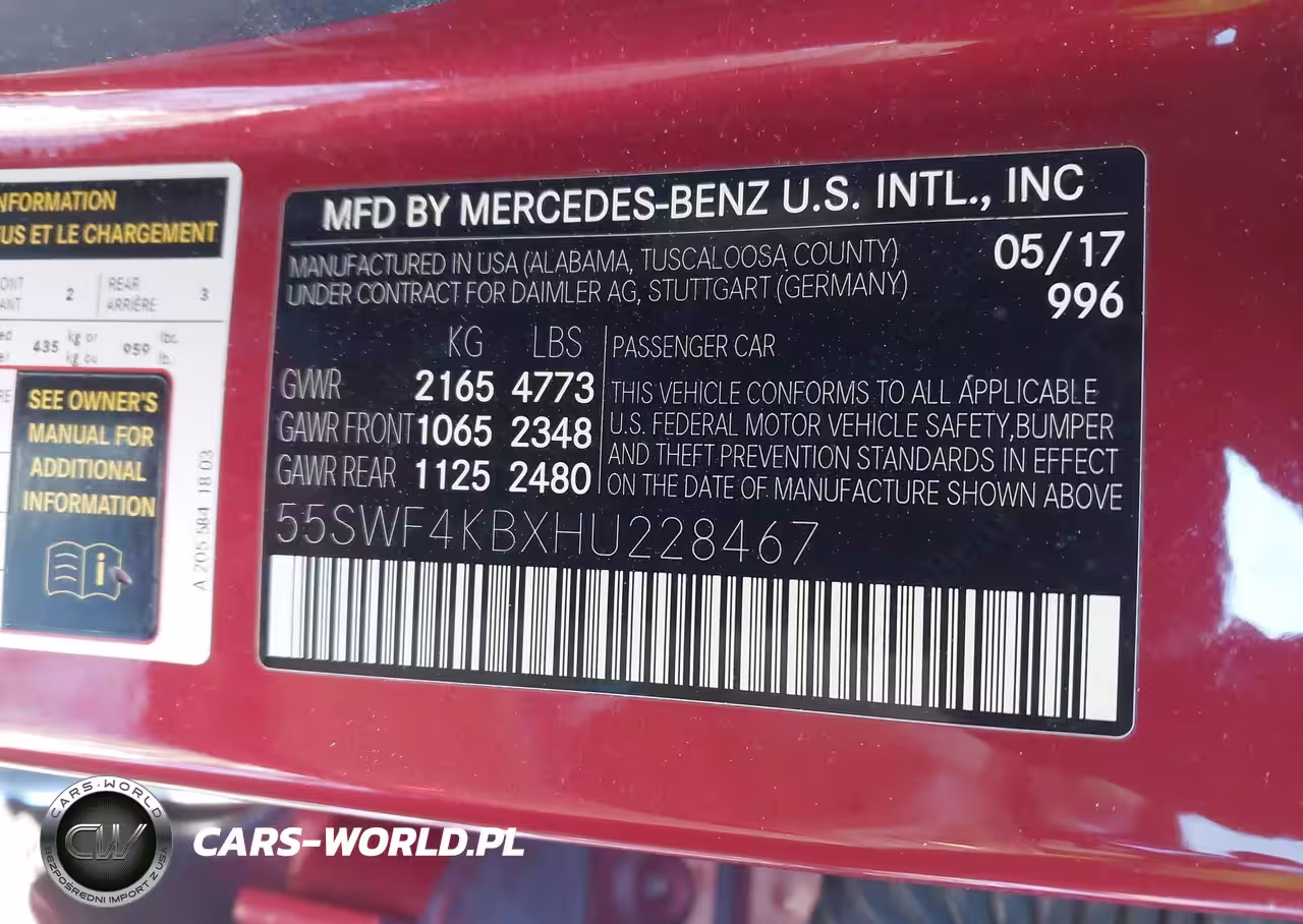 IAAI Nr: I-44287785 VIN: 55SWF4KBXHU228467 Port: Elizabeth, NJ