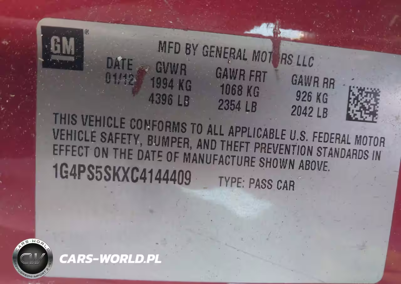 IAAI Nr: I-44291365 VIN: 1G4PS5SKXC4144409 Port: Savannah, GA