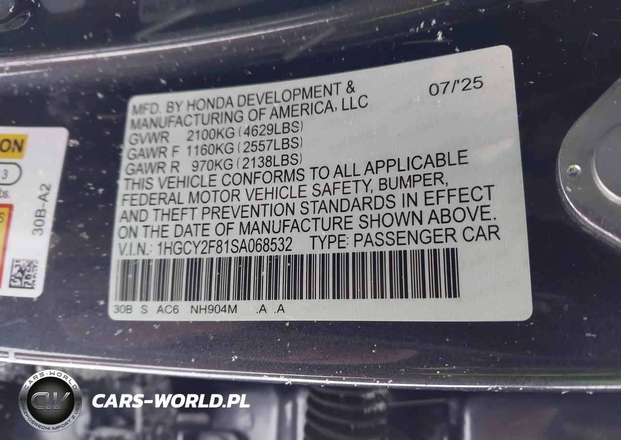 IAAI Nr: I-44292331 VIN: 1HGCY2F81SA068532 Port: Indianapolis, IN