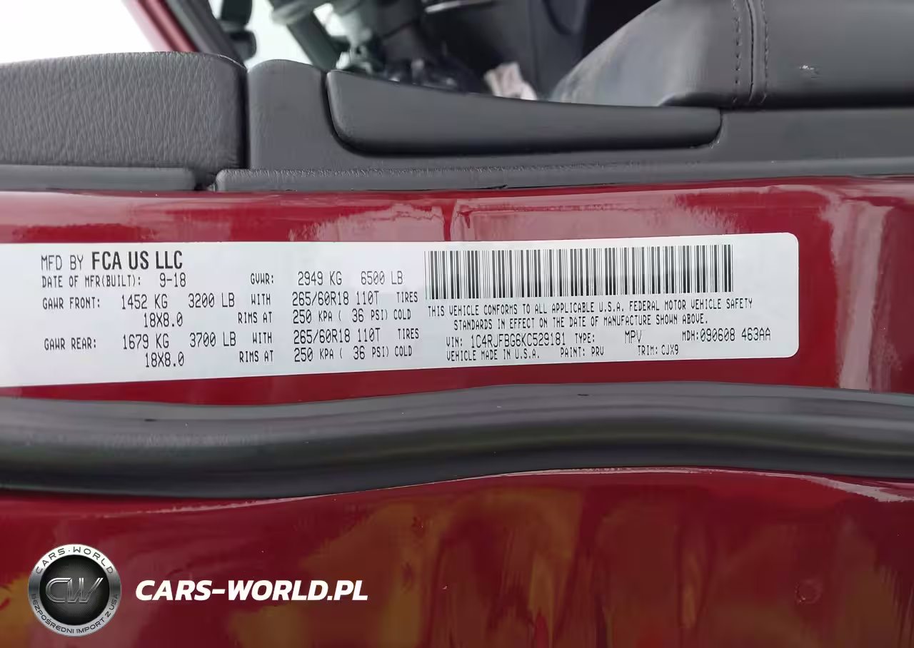 IAAI Nr: I-44292926 VIN: 1C4RJFBG6KC529181 Port: Indianapolis, IN