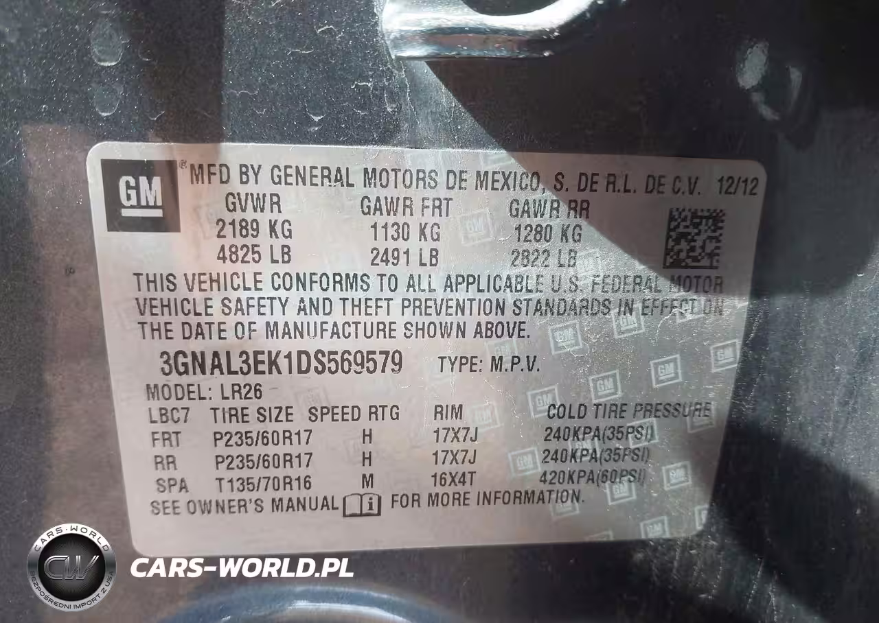 IAAI Nr: I-44293438 VIN: 3GNAL3EK1DS569579 Port: Los Angeles, CA