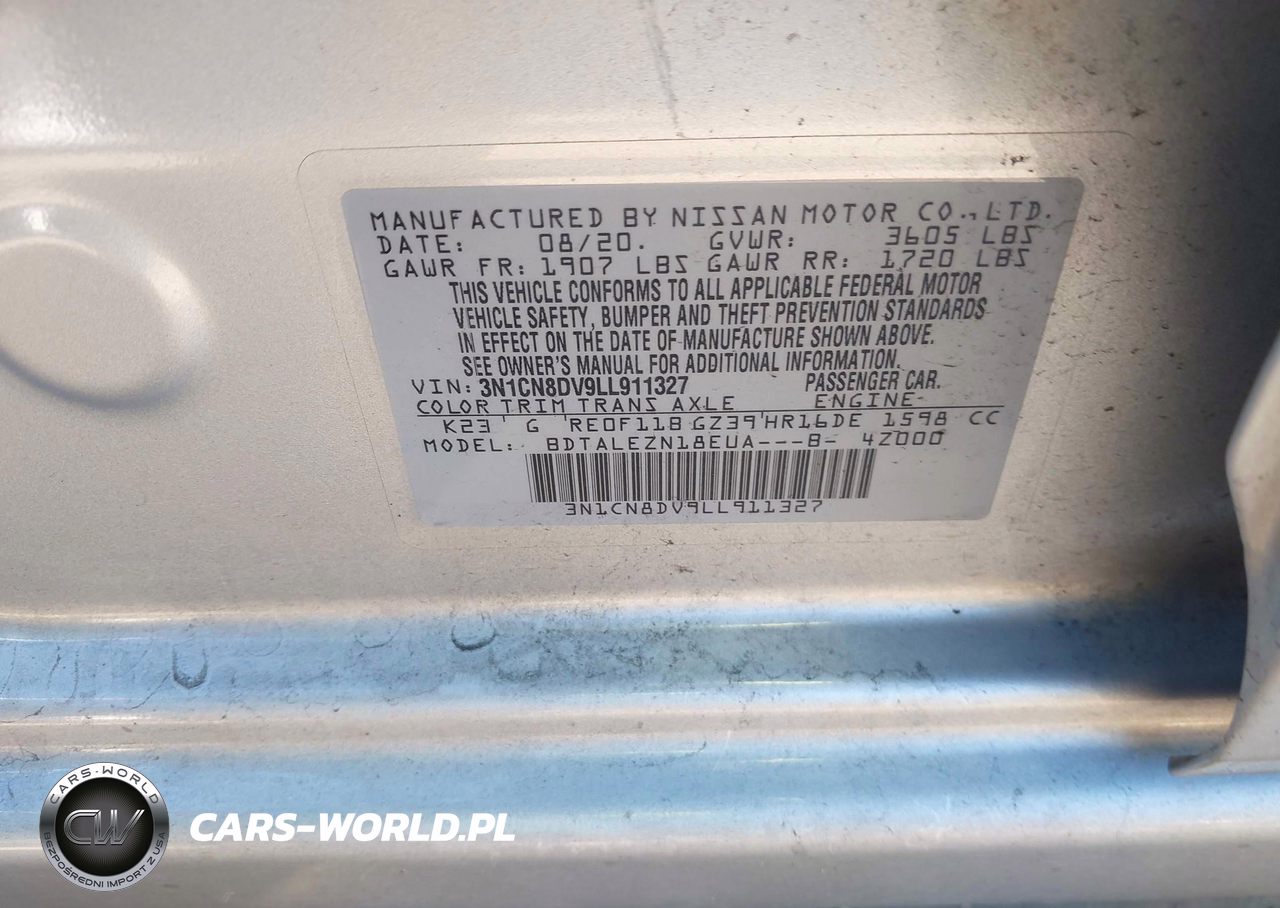 IAAI Nr: I-44294588 VIN: 3N1CN8DV9LL911327 Port: Houston, TX