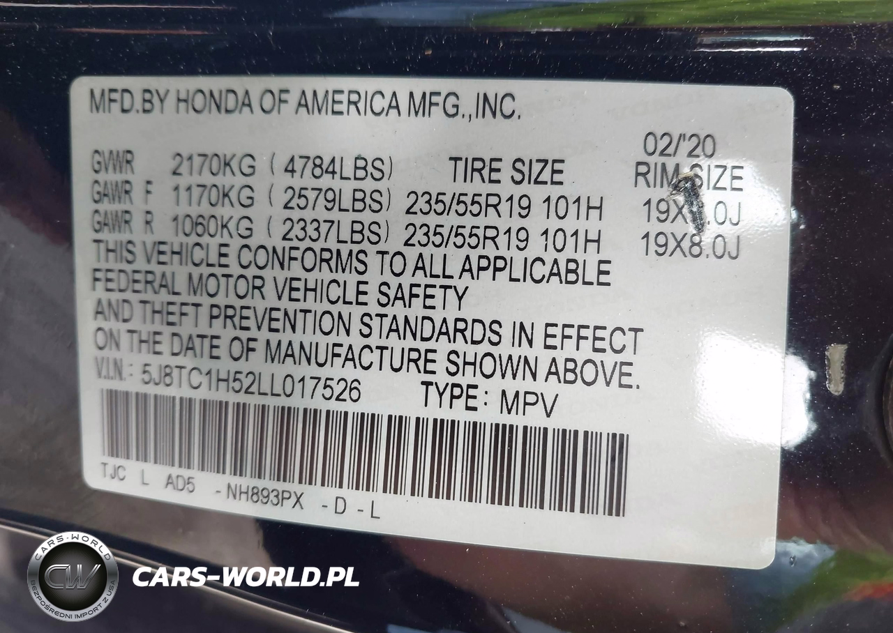 IAAI Nr: I-44297148 VIN: 5J8TC1H52LL017526 Port: Houston, TX