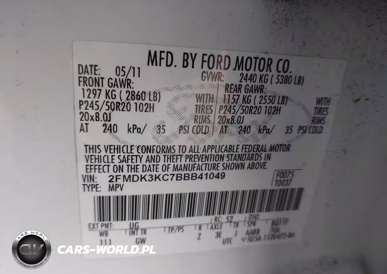 IAAI Nr: I-44298460 VIN: 2FMDK3KC7BBB41049 Port: Houston, TX