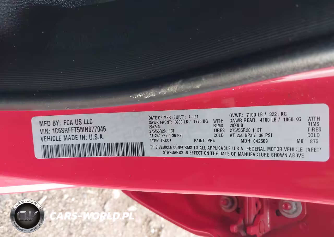 IAAI Nr: I-44299903 VIN: 1C6SRFFT5MN677046 Port: Houston, TX