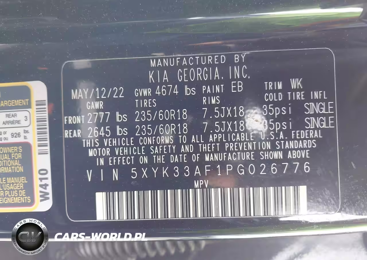 IAAI Nr: I-44300249 VIN: 5XYK33AF1PG026776 Port: Houston, TX