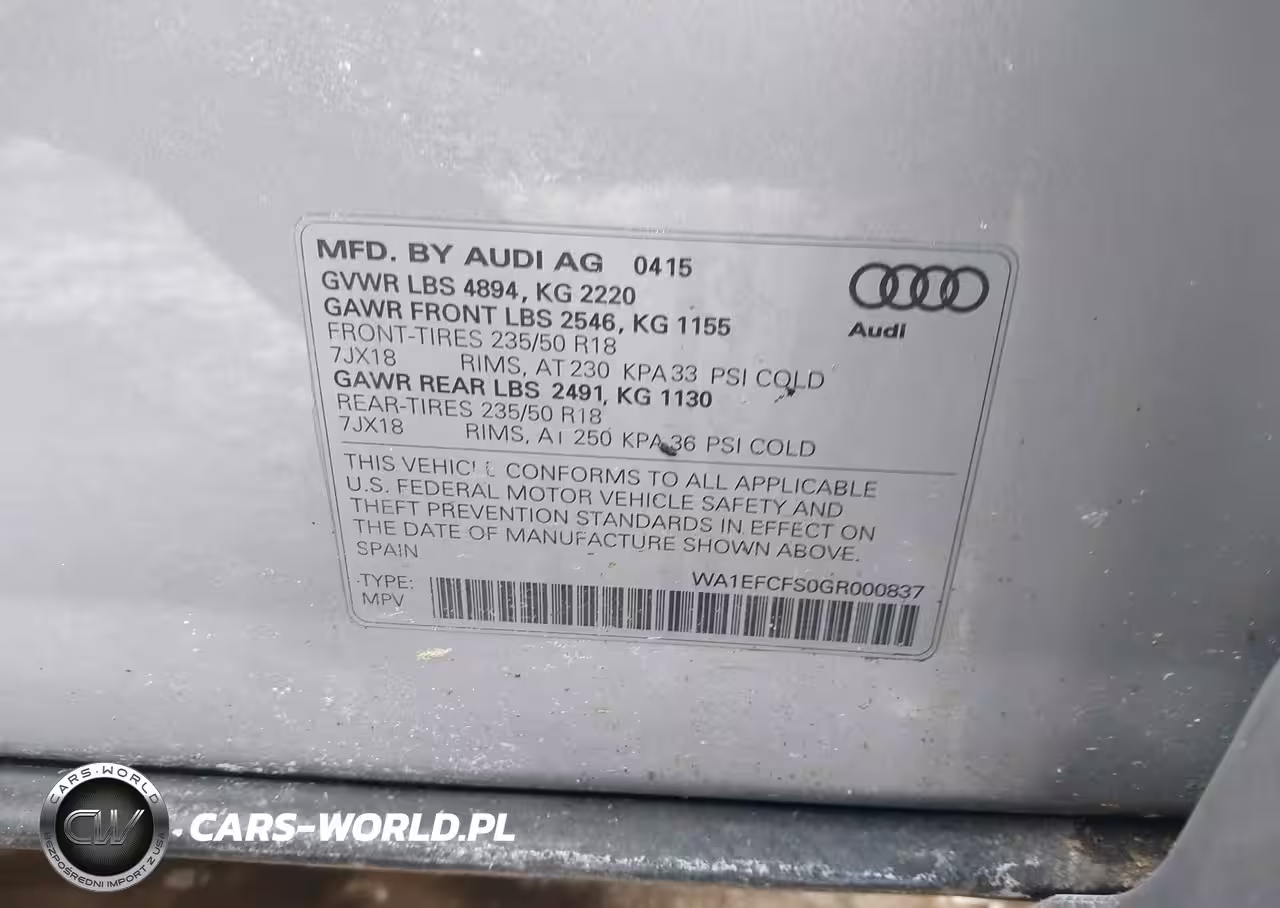IAAI Nr: I-44300682 VIN: WA1EFCFS0GR000837 Port: Elizabeth, NJ