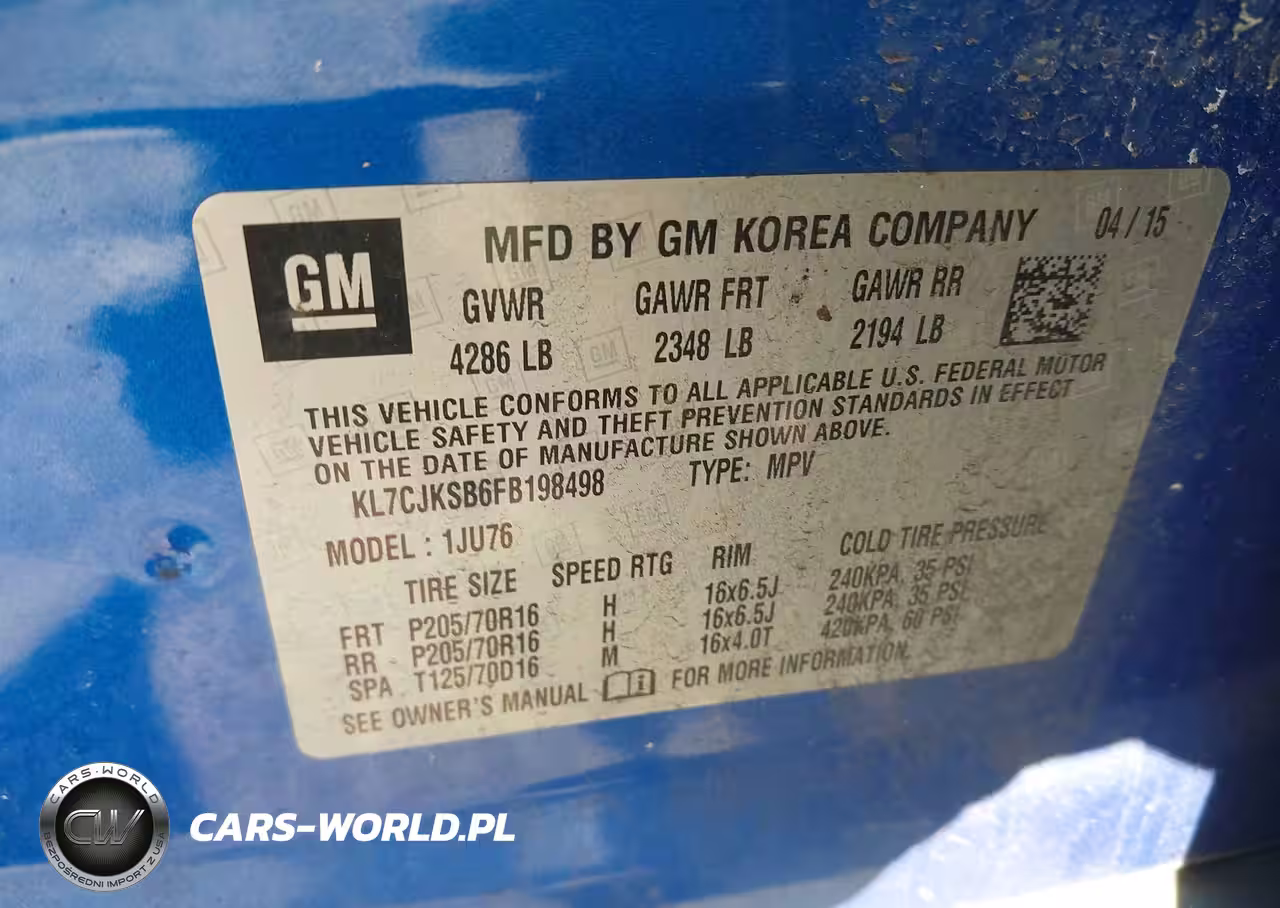IAAI Nr: I-44301698 VIN: KL7CJKSB6FB198498 Port: Elizabeth, NJ