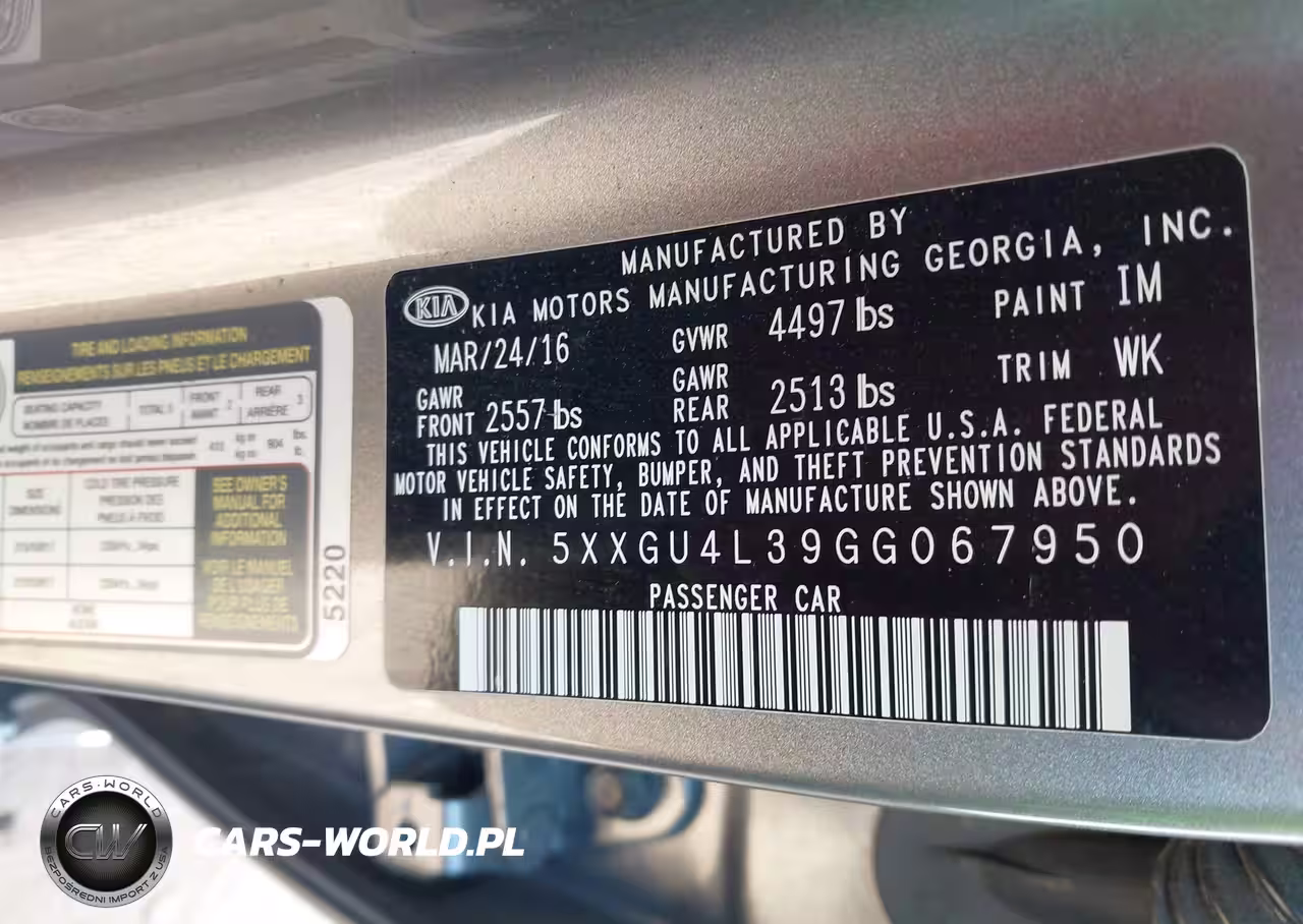 IAAI Nr: I-44302217 VIN: 5XXGU4L39GG067950 Port: Los Angeles, CA