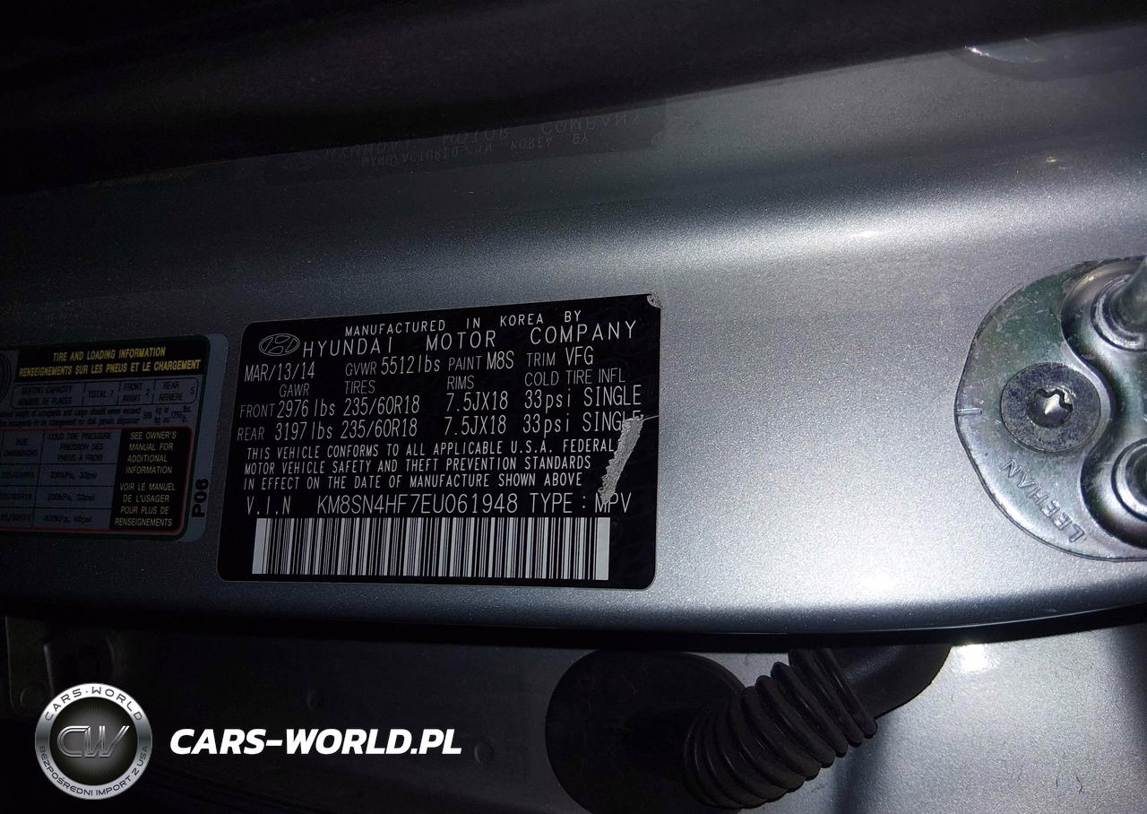 IAAI Nr: I-44304427 VIN: KM8SN4HF7EU061948 Port: Los Angeles, CA