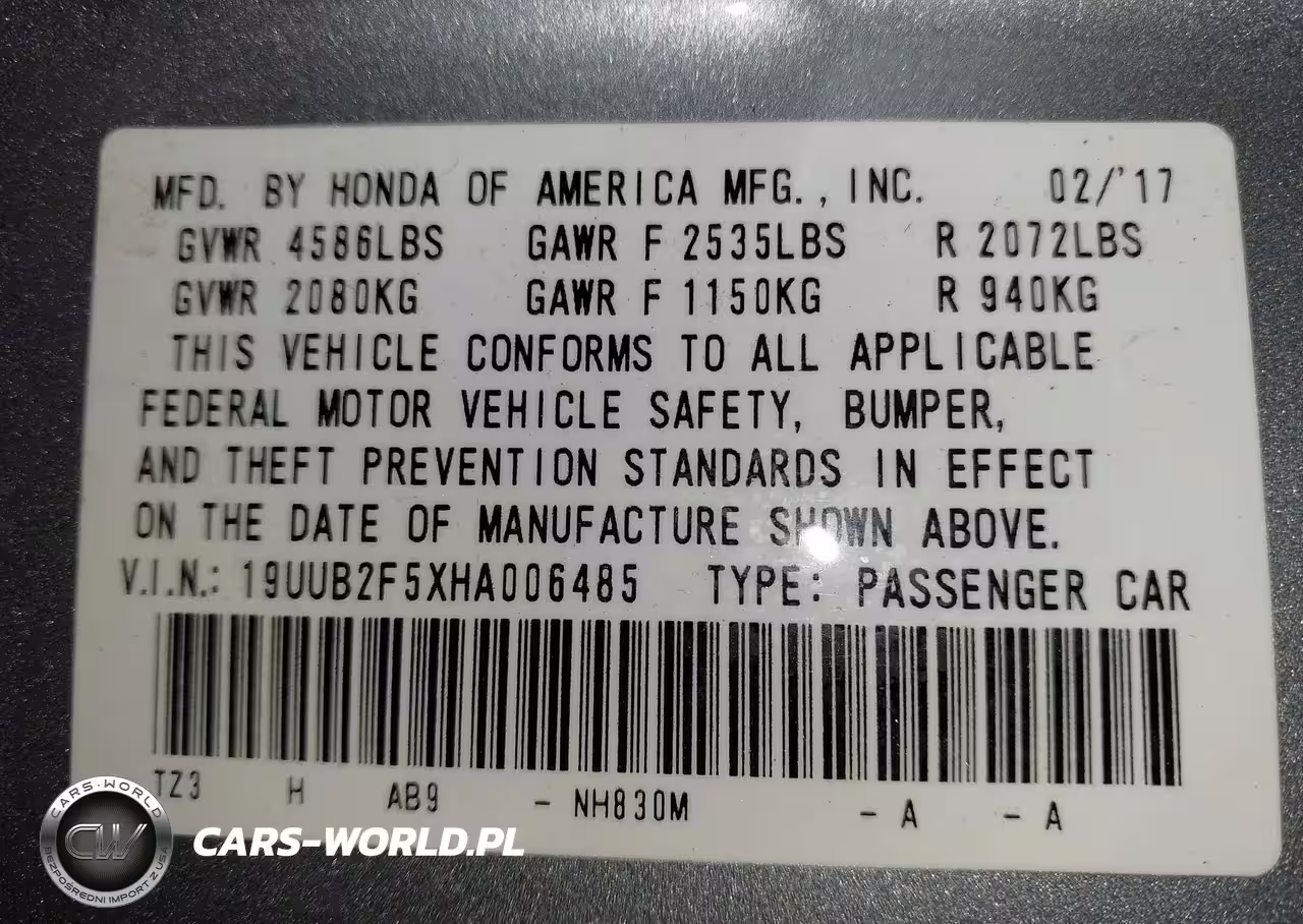 IAAI Nr: I-44304830 VIN: 19UUB2F5XHA006485 Port: Los Angeles, CA