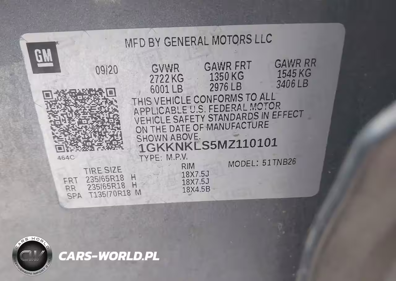 IAAI Nr: I-44305957 VIN: 1GKKNKLS5MZ110101 Port: Houston, TX