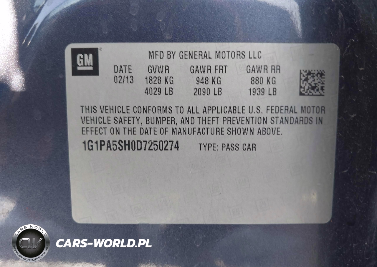 IAAI Nr: I-44306055 VIN: 1G1PA5SH0D7250274 Port: Indianapolis, IN