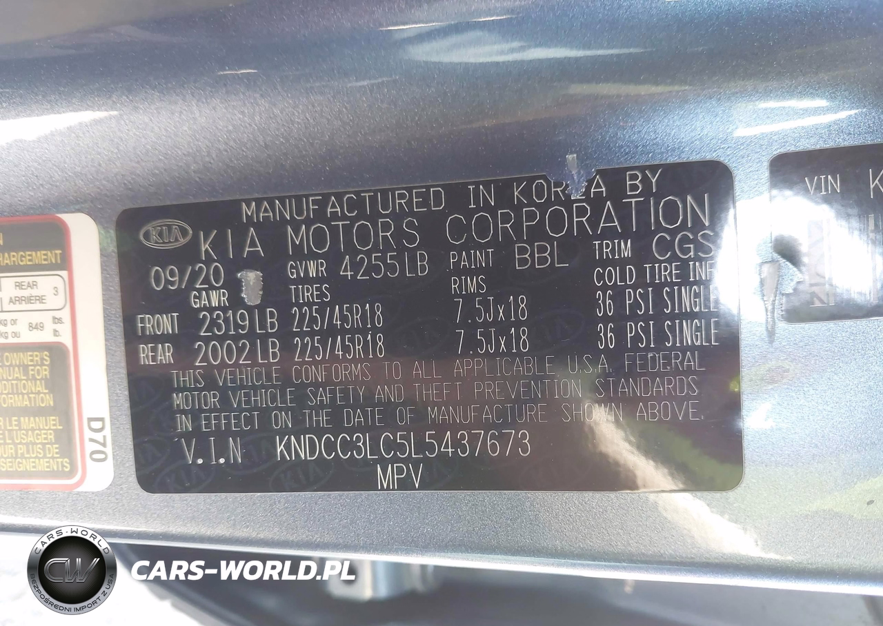 IAAI Nr: I-44306293 VIN: KNDCC3LC5L5437673 Port: Los Angeles, CA