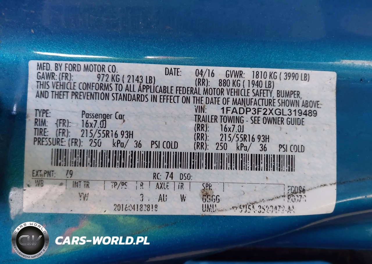 IAAI Nr: I-44306315 VIN: 1FADP3F2XGL319489 Port: Los Angeles, CA