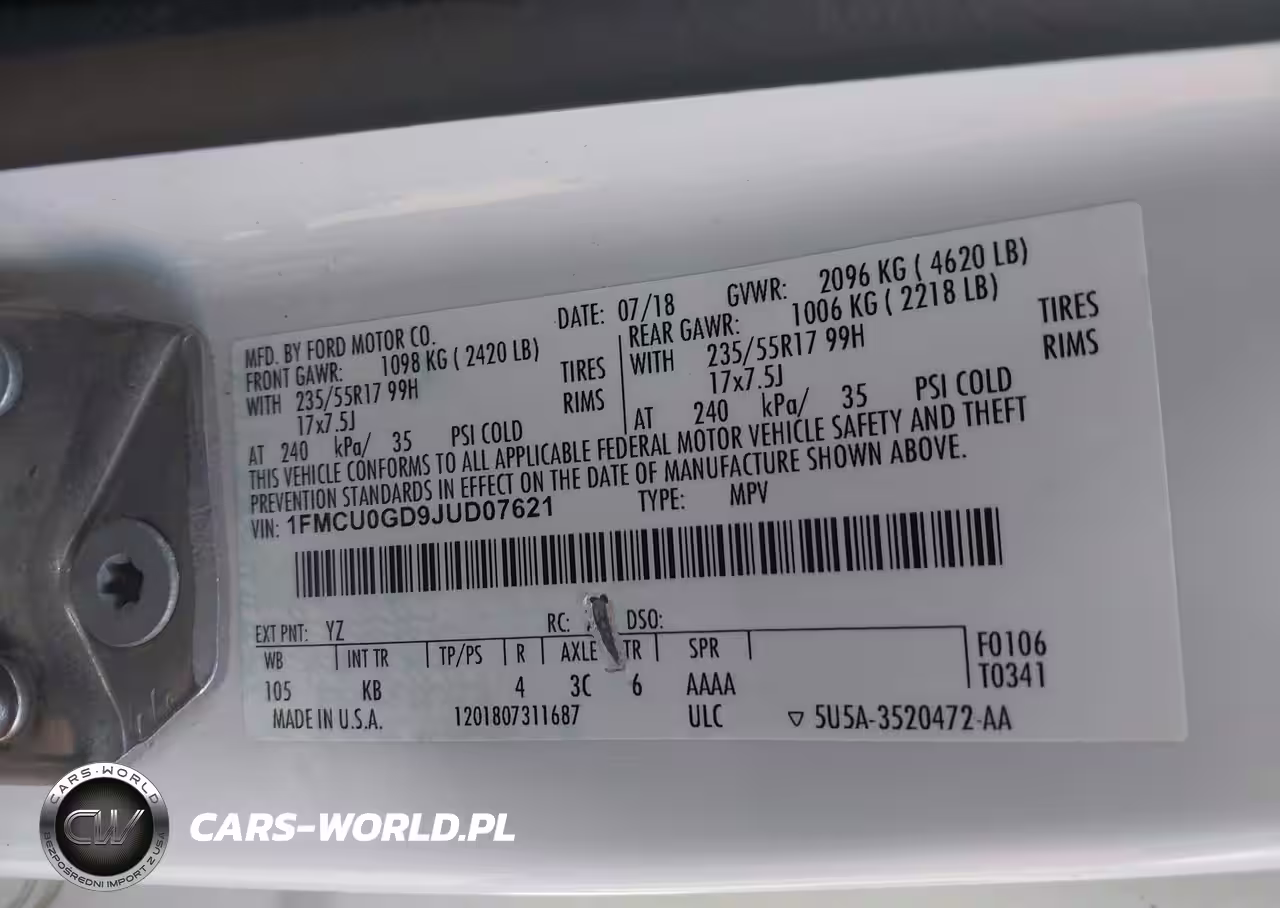 IAAI Nr: I-44312707 VIN: 1FMCU0GD9JUD07621 Port: Houston, TX