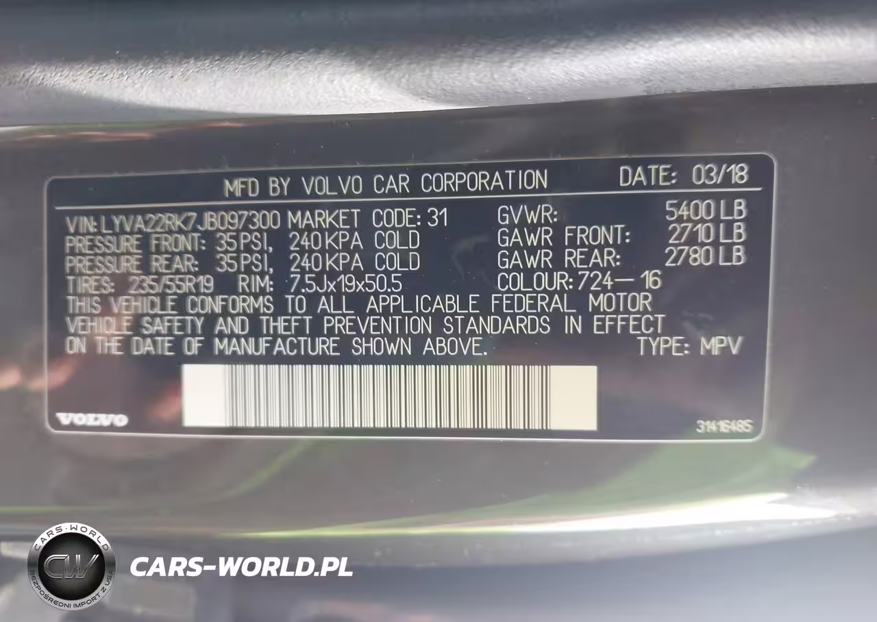IAAI Nr: I-44312928 VIN: LYVA22RK7JB097300 Port: Indianapolis, IN