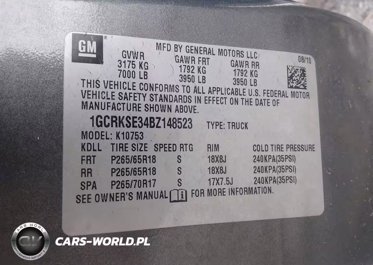 IAAI Nr: I-44313783 VIN: 1GCRKSE34BZ148523 Port: Elizabeth, NJ