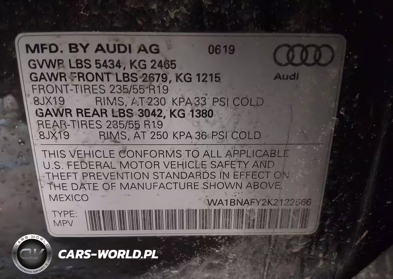 IAAI Nr: I-44314082 VIN: WA1BNAFY2K2122566 Port: Indianapolis, IN
