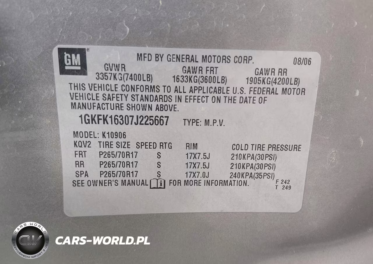 IAAI Nr: I-44314732 VIN: 1GKFK16307J225667 Port: Elizabeth, NJ
