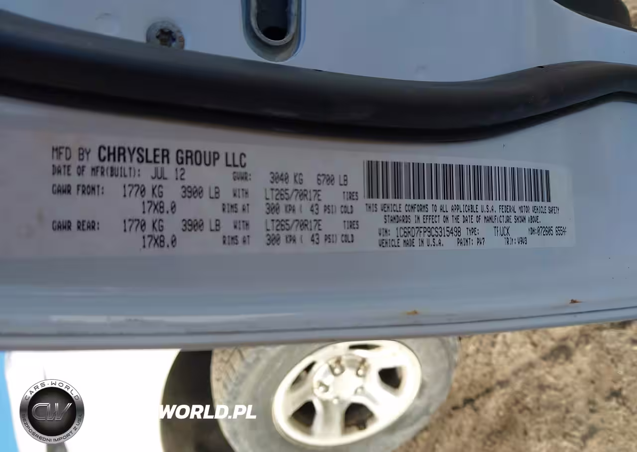 IAAI Nr: I-44316647 VIN: 1C6RD7FP9CS315498 Port: Indianapolis, IN