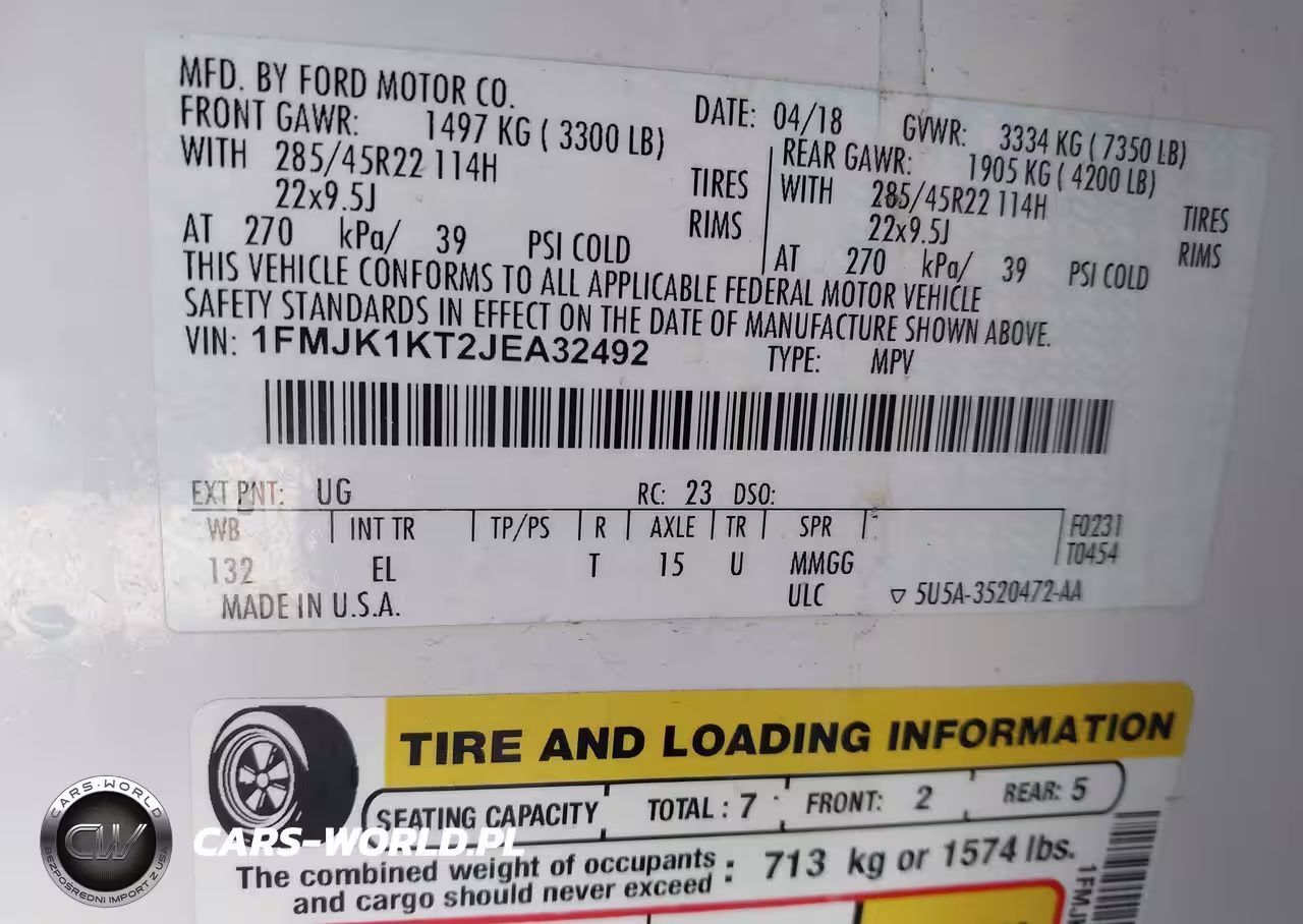 IAAI Nr: I-44317097 VIN: 1FMJK1KT2JEA32492 Port: Houston, TX