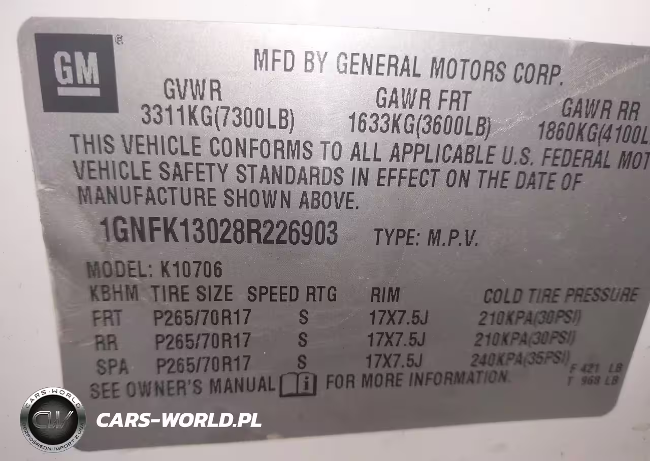 IAAI Nr: I-44317576 VIN: 1GNFK13028R226903 Port: Indianapolis, IN