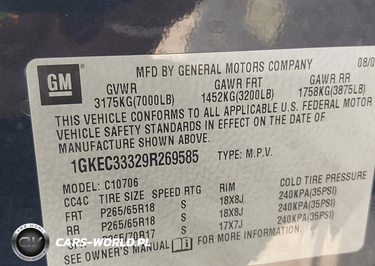 IAAI Nr: I-44319236 VIN: 1GKEC33329R269585 Port: Houston, TX