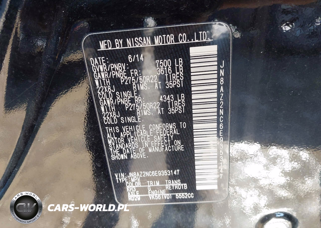 IAAI Nr: I-44319691 VIN: JN8AZ2NC6E9353147 Port: Indianapolis, IN