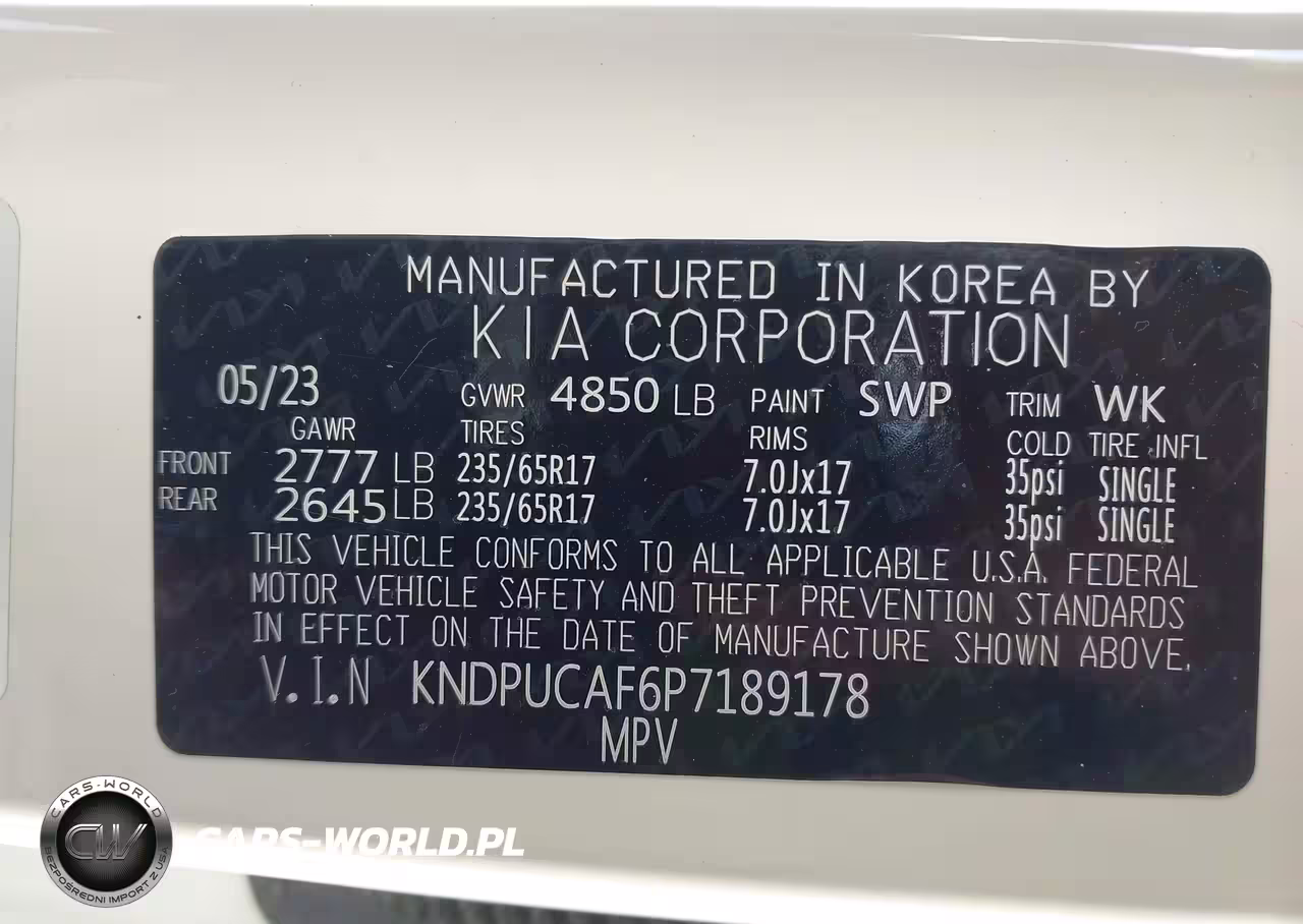 IAAI Nr: I-44323617 VIN: KNDPUCAF6P7189178 Port: Indianapolis, IN