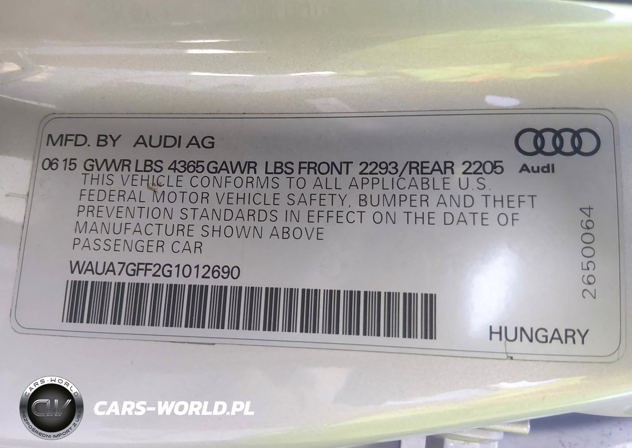 IAAI Nr: I-44329224 VIN: WAUA7GFF2G1012690 Port: Los Angeles, CA
