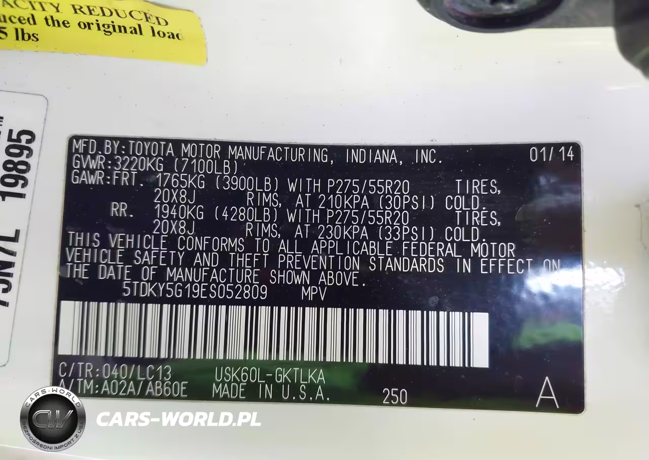 IAAI Nr: I-44329510 VIN: 5TDKY5G19ES052809 Port: Houston, TX