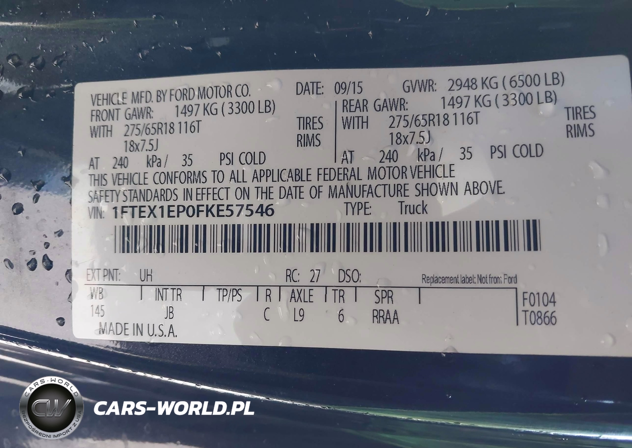 IAAI Nr: I-44330775 VIN: 1FTEX1EP0FKE57546 Port: Elizabeth, NJ