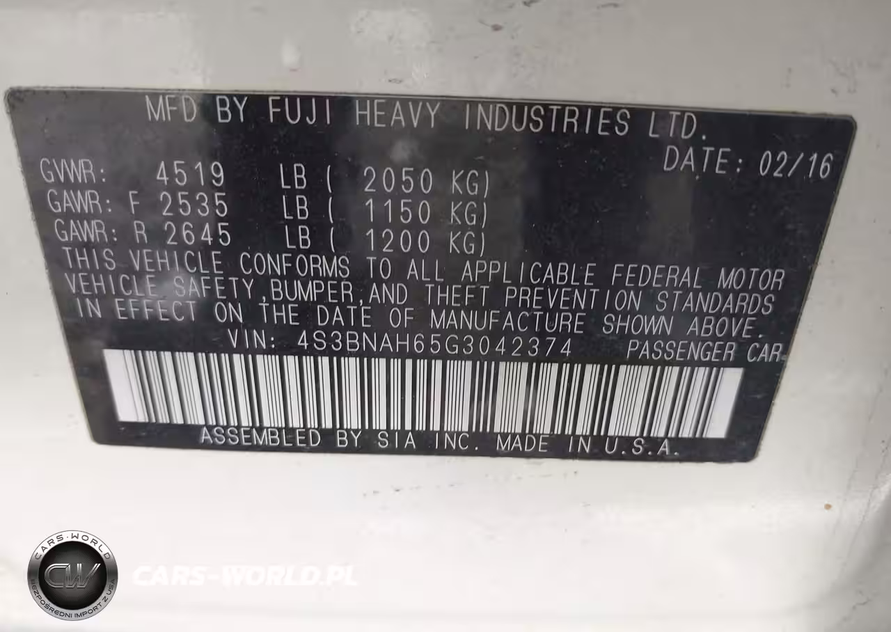 IAAI Nr: I-44331785 VIN: 4S3BNAH65G3042374 Port: Indianapolis, IN