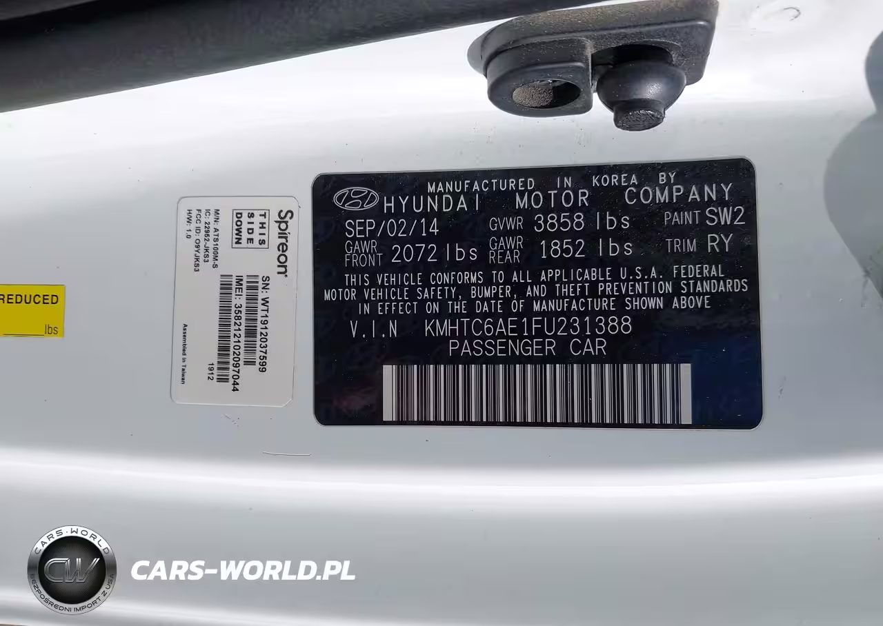 IAAI Nr: I-44332232 VIN: KMHTC6AE1FU231388 Port: Los Angeles, CA