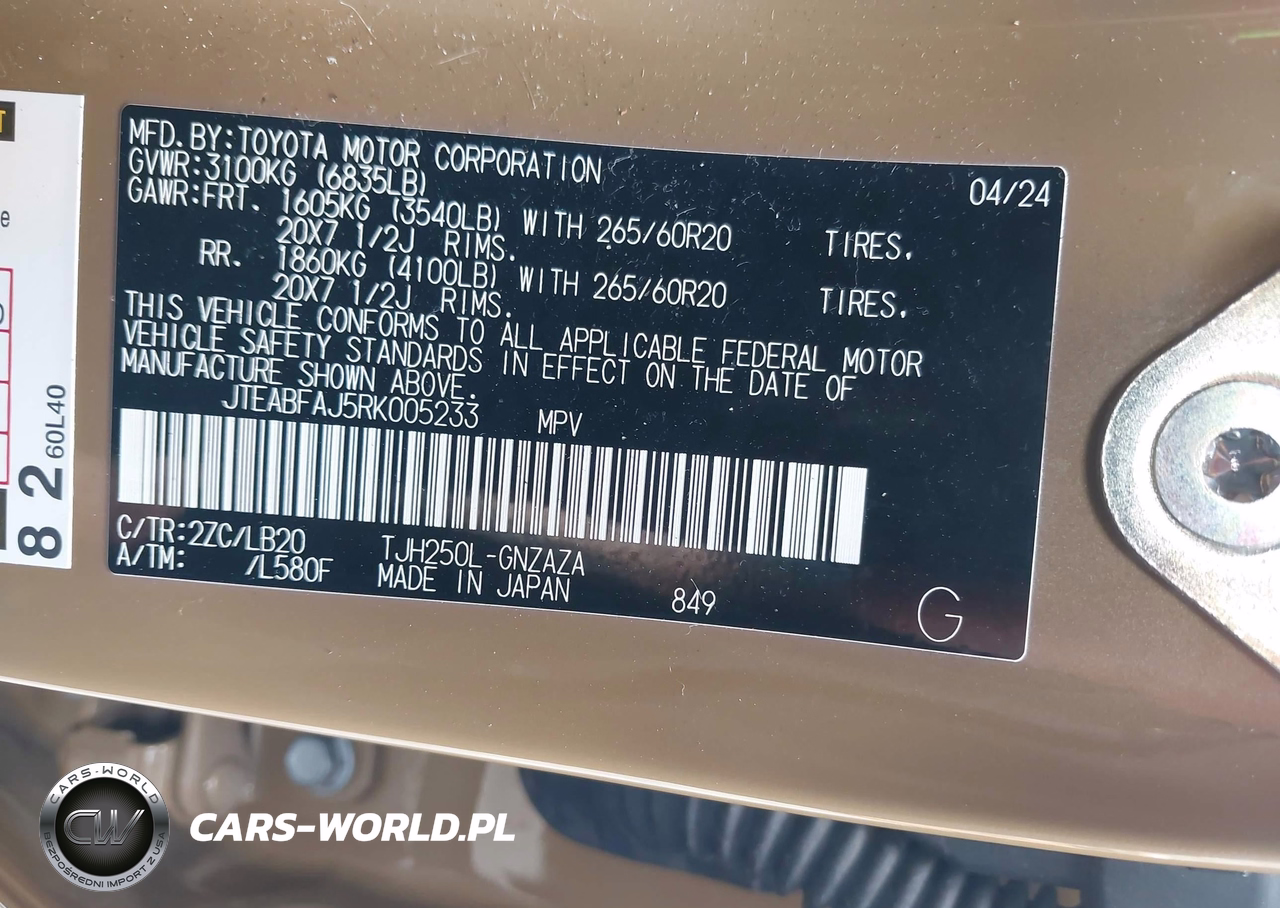 IAAI Nr: I-44332587 VIN: JTEABFAJ5RK005233 Port: Los Angeles, CA