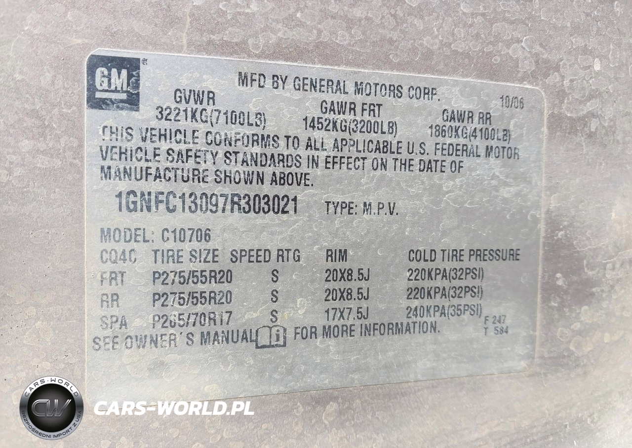 IAAI Nr: I-44332684 VIN: 1GNFC13097R303021 Port: Savannah, GA