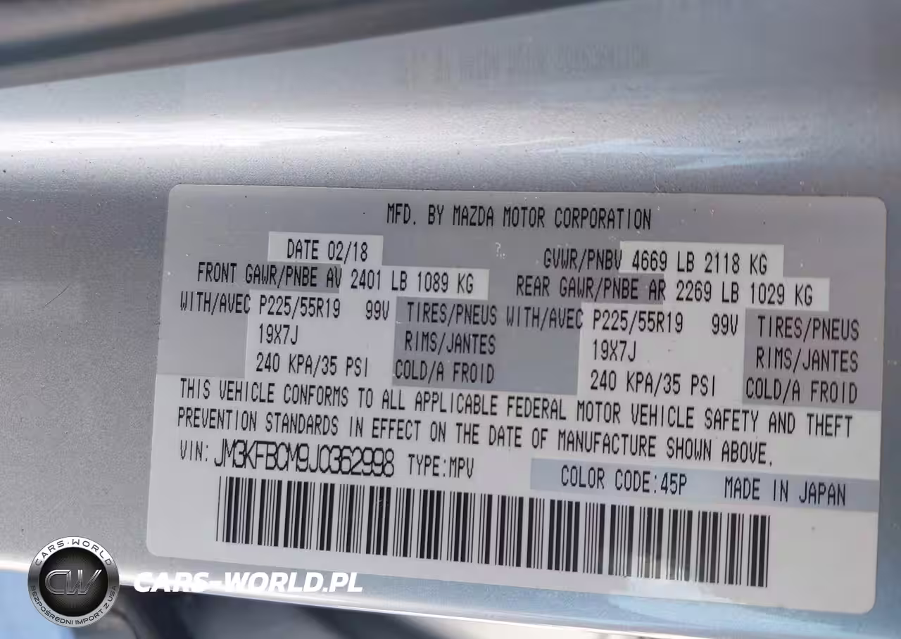 IAAI Nr: I-44333453 VIN: JM3KFBCM9J0362998 Port: Elizabeth, NJ